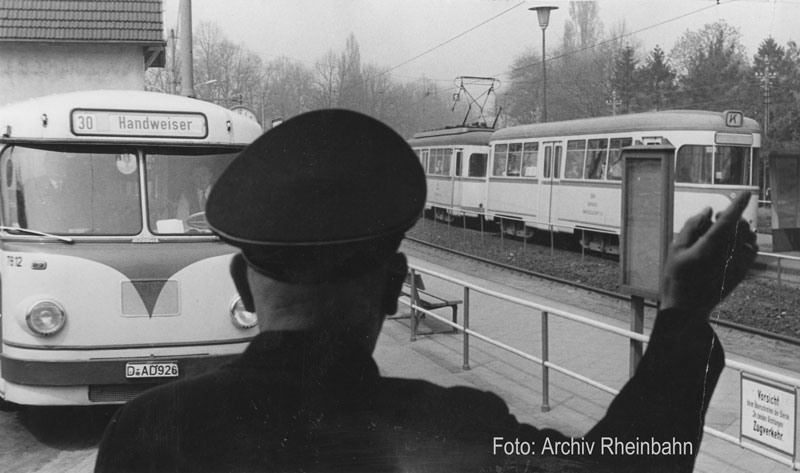 Meererbusch, Umsteigen in den Bus zum Handweiser (Foto von 1962)