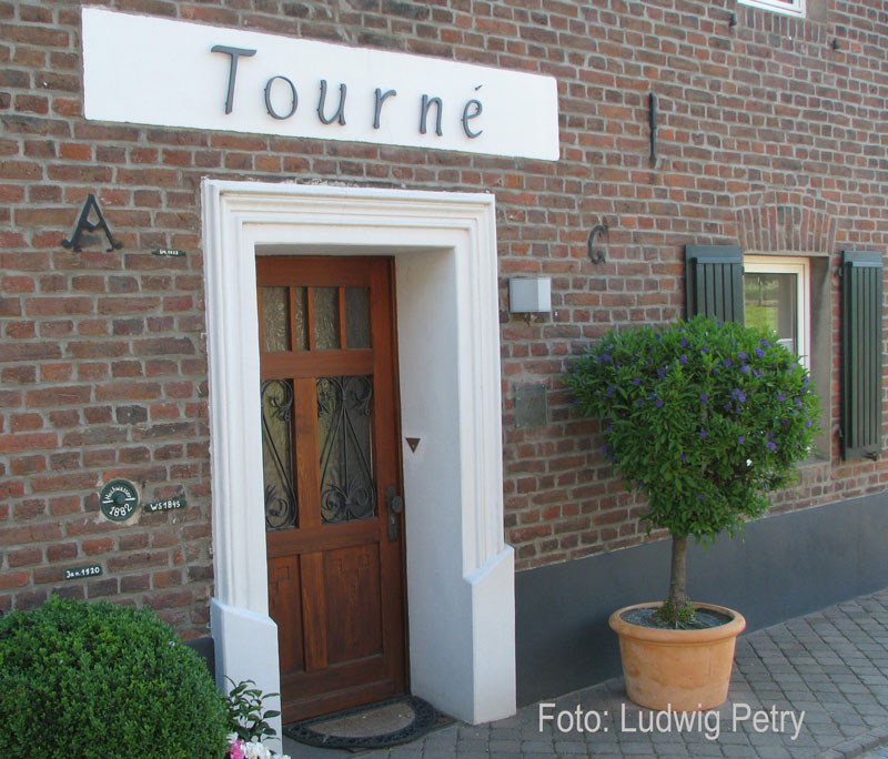 Hochwassermarken (links von der Tür) am Haus Tourne in Langst