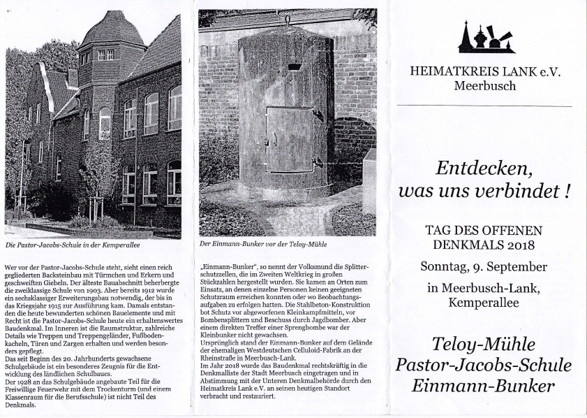 Flyer (Vorderseite) mit Infos zur Pastor-Jacobs-Schule und zum Einmann-Bunker