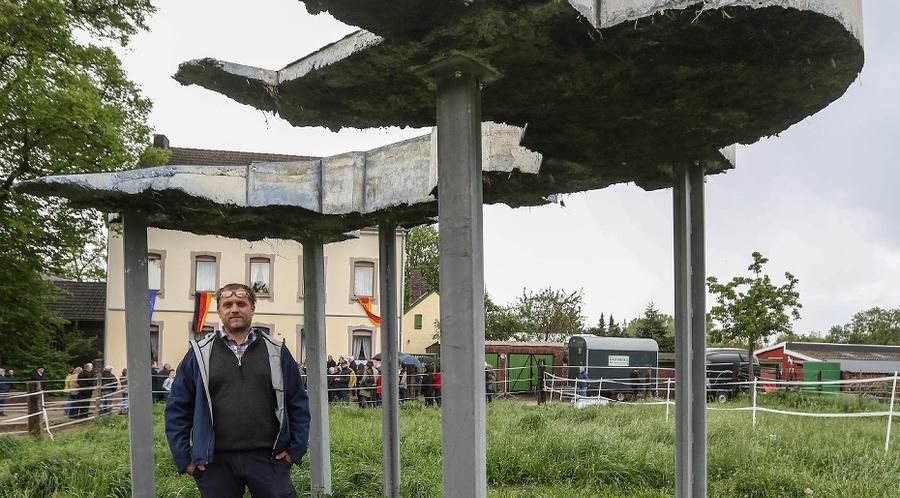 Der Künstler Christian Forsen und seine Installation "Kapelle momentan" (Foto: H.-J.Bauer, in der RP vom 29.04.19)