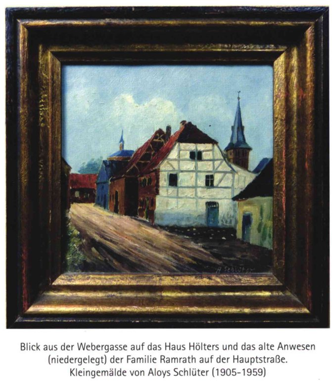 Blick aus der Webergasse auf das Haus Hölters und das alte Anwesen (niedergelegt) der Familie Ramrath auf der Hauptstraße.