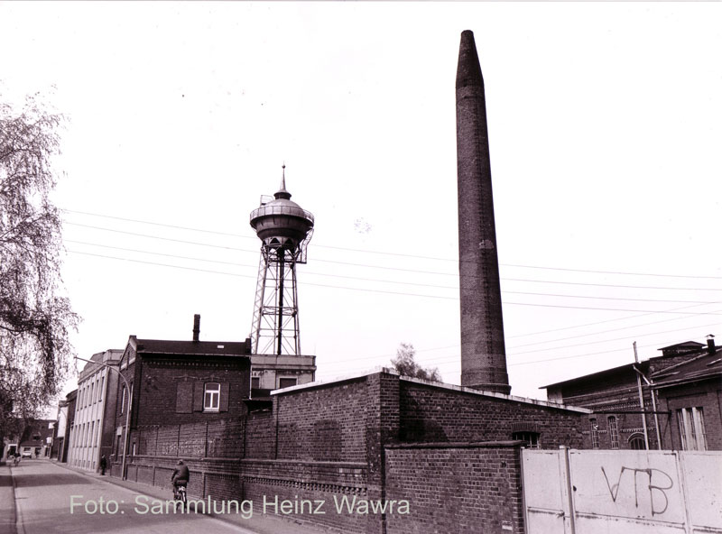 Historisches Foto: Werksfront zur Rheinstraße und Schornstein